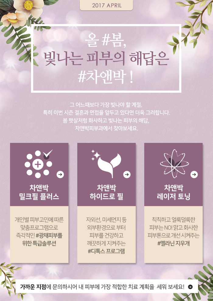 No.1 차앤박피부과가 엄선한 이달의 추천 클리닉입니다.
